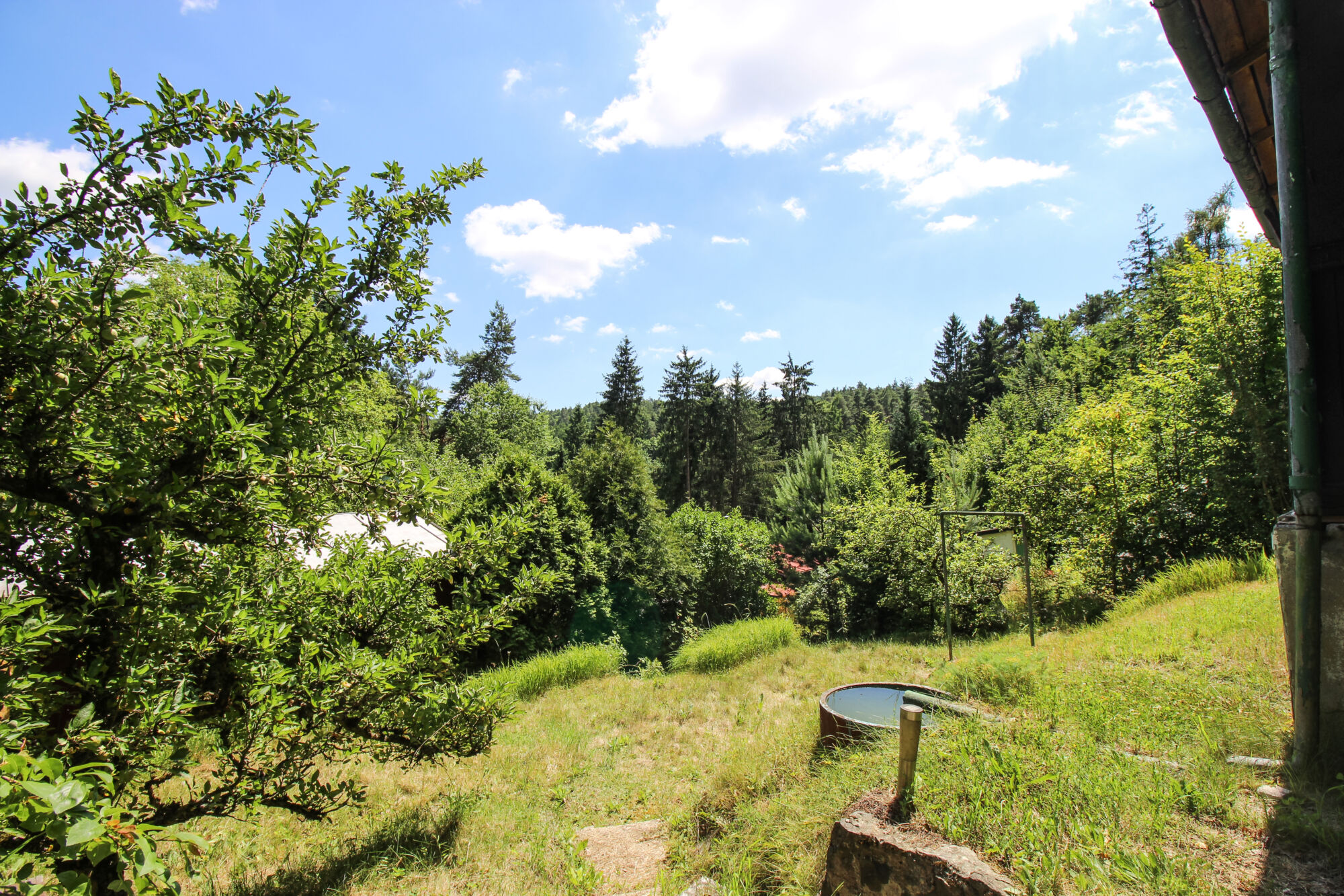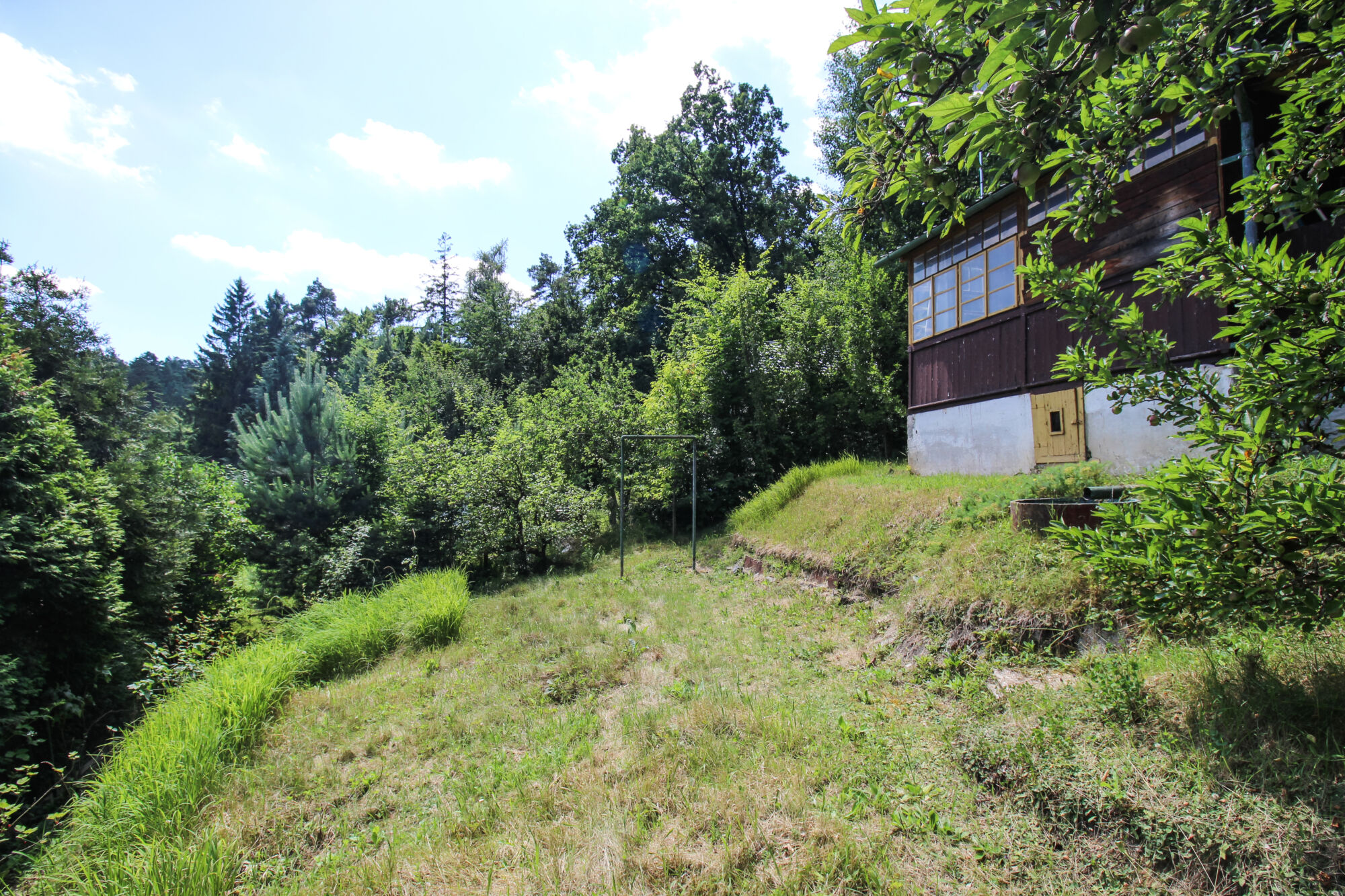 Chata je evidovaná jako objekt rodinné rekreace s číslem evidenčním a nabízí zastavěnou plochu 26 m². Leží na slunném jižně až jihovýchodně orientovaném svahu, což zajišťuje celodenní přísun přirozeného světla a tepla – ideální pro milovníky slunce, zahradničení i relaxace. Přístup k pozemku je z obecní cesty po částečně zpevněné komunikaci, finálně po schodech. Tyto schody však otevírají cestu ke skutečnému pokladu – dechberoucímu výhledu do údolí a naprostému klidu, který zajišťuje les přímo za pozemkem.